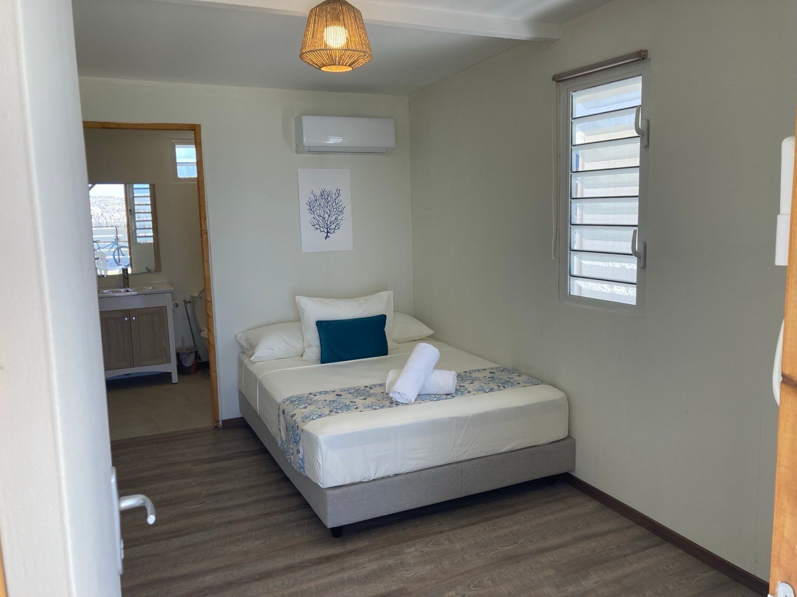 1 chambre avec lit double + 1 salle de bain privative + salon et cuisine partagée (avec l'autre chambre de la maison)